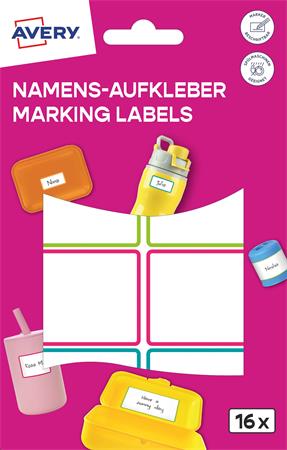 Címke, műanyag, iskolai, 46x33 mm, kézzel írható, AVERY ZWECKFORM, színes, 16 címke/csomag